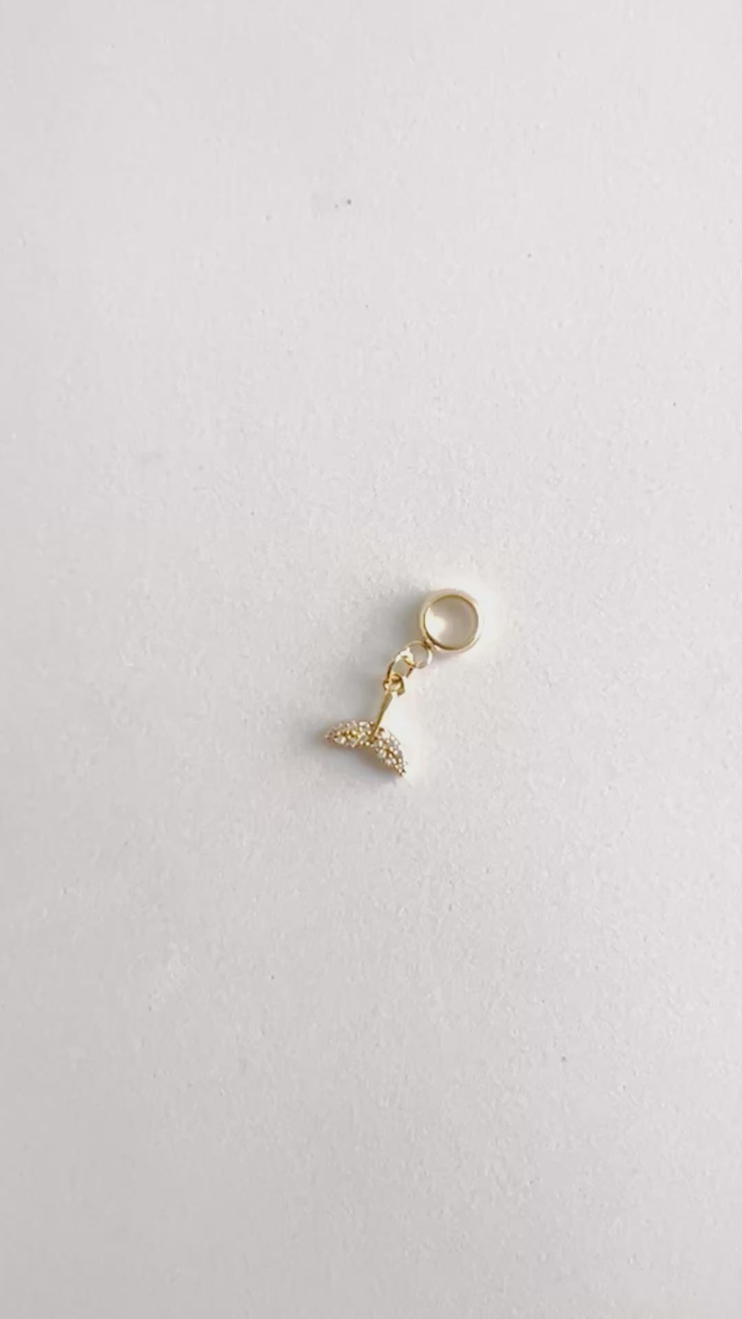 18K gold-plated, mermaid tail, micro-pave dangle charm. Each charm comes fully assembled with a high-quality, tarnish-free, stainless steel gold bail (charm holder) for easy addition to your bracelet. Just slide the charm right on to your bracelet! No need to struggle with jump rings trying to put your charm on your bracelet.